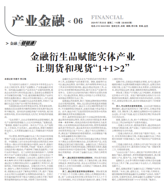 中國冶金報(bào) | 金融衍生品賦能實(shí)體產(chǎn)業(yè)讓期貨和現(xiàn)貨“1+1>2